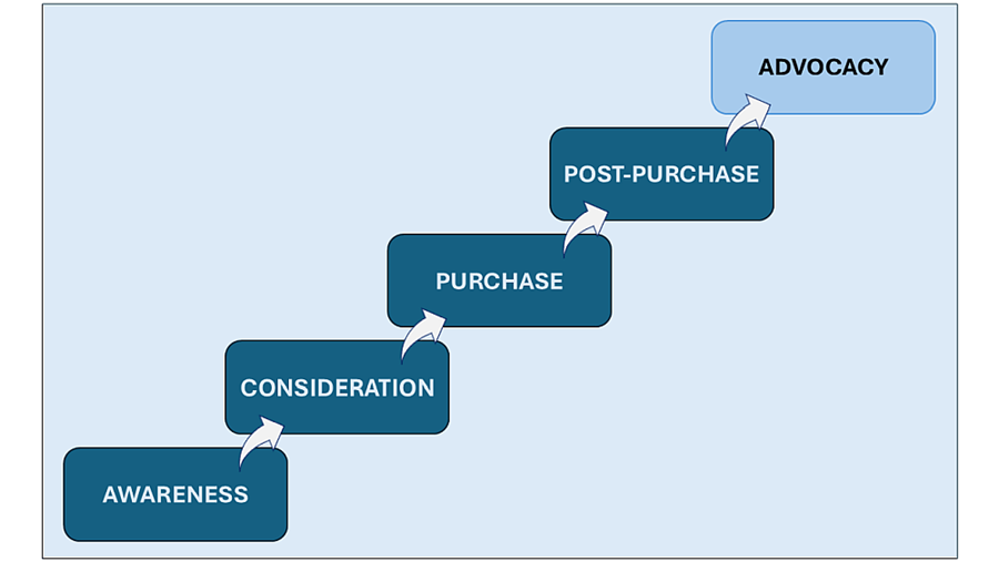 Over time, positive experiences may lead to advocacy. Satisfied customers may leave reviews, recommend the product to friends, or share their experiences on social media. These actions, while not always intentional marketing efforts on the customer’s part, influence future buyers and help restart the journey for others.
